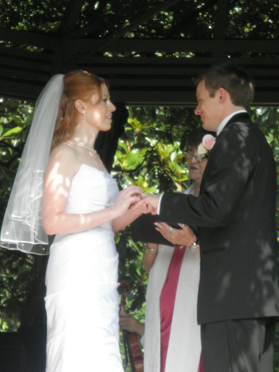Everyone enjoyed the ceremony so much, especially when I told their "story" of how they met, fell in love, how Jon proposed, what they have been up to and their plans for their future. We honored their parents. They made their vows to each other which they had written with a bit of humor thrown in, and then exchanged rings. I made the pronouncement of marriage.