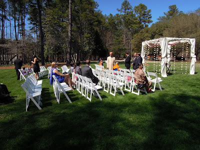 What a beautiful day it was. There was a slight breeze and the temperature was perfect.Sonia, our flower girl, did an excellent job and threw lots of petals on the aisle.