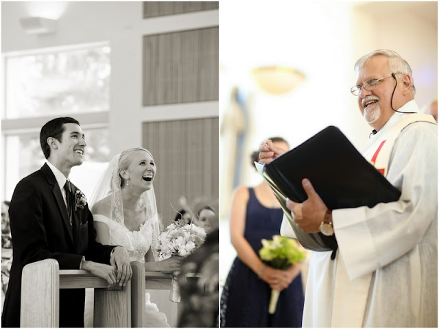 - Laughed or giggled: Winding up stranded in my bedroom because the groomsmen were out in the house and my brides maids had all disappeared on me! Stuffing myself into a car in my dress! Everything our priest said. Just look at the pictures, I laughed through nearly the entire ceremony! Pepper forgetting my bouquet at La Caille! Kyle dancing with his mother. It just made me so happy to see them dancing! Having the girls from my college prank Kyle and I with a song that they didn't get a chance to while we were at the school. My dad playing with the band. Dancing with so many people I love who had come to celebrate with us!