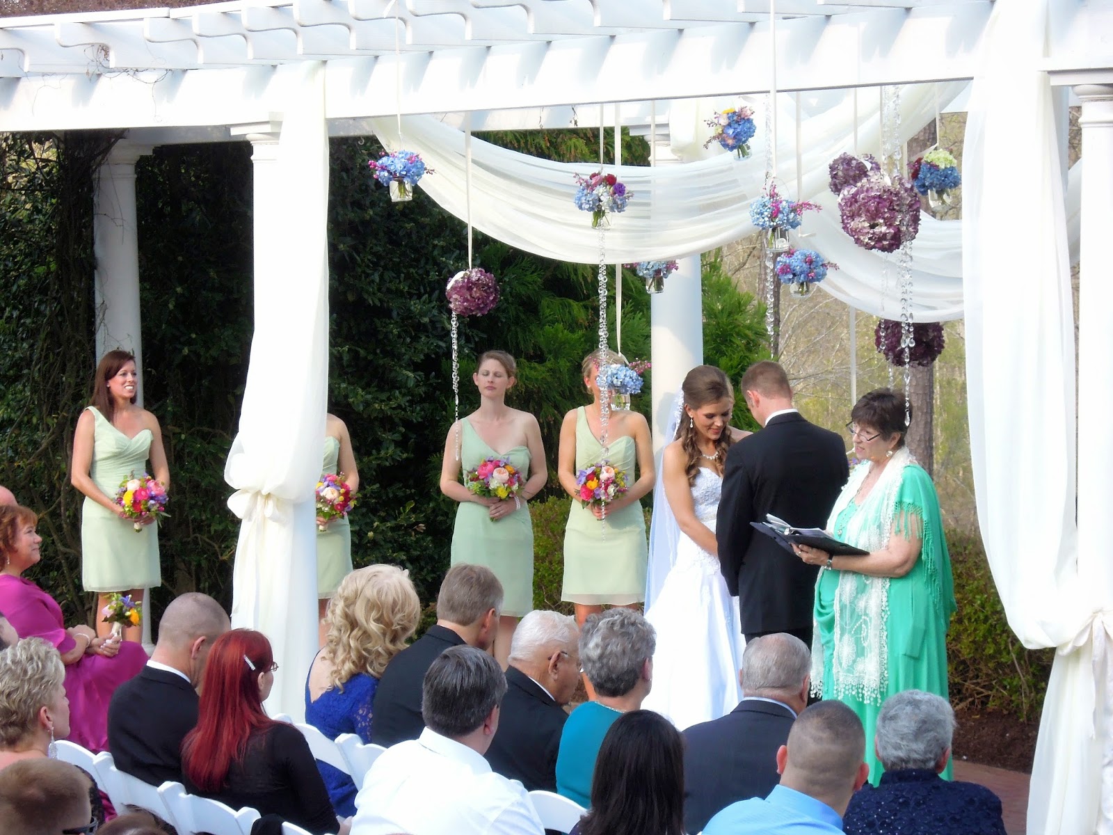 I met Ashlee and Jay last August to plan their wedding ceremony for their wedding on April 12, 2014 at Highgrove Estates in Fuquay-Varina. Ashlee's last name was familiar to me because my first cousin married a man with that name and they lived in New York like Ashlee and her family. Turns out we may be distantly related by marriage and several times removed and all that! Such a small world!