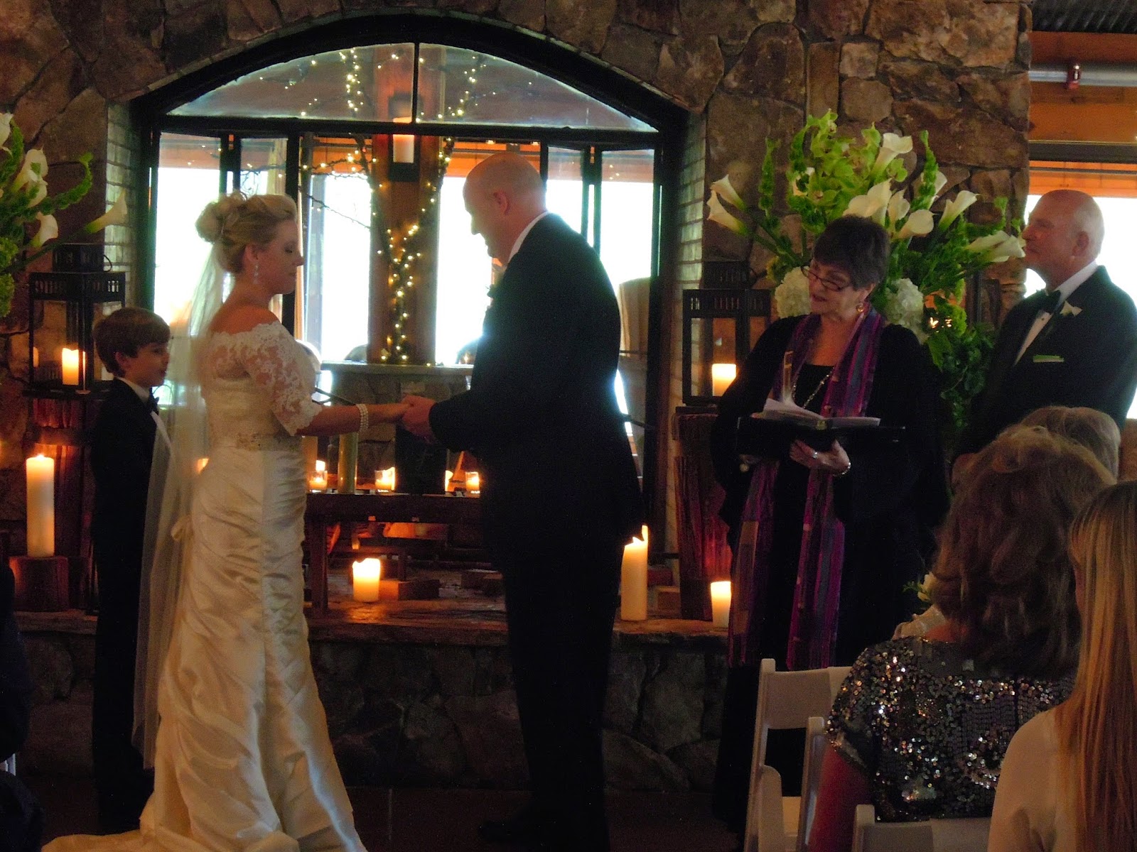 After the ceremony we went outside for some photos. Josh quickly found this big rock to climb onto! He is such a cutie! Our photographers were Laura Simson and her second shooter Rebecca of Captured Moments Photography.Stephanie, Jay and Josh, what a fabulous family you all are! It was my honor to join you together in marriage. I wish for you only the best life can offer!